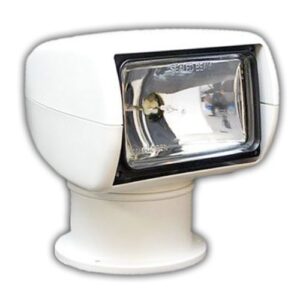 Dimensions: – 185mm long, 180mm wide, 210mm high Fuse Size: – 10(amp) Output: – 7 lux at 100m. Bulb Power: – 50(W) Candlepower: – 100,000 Sealed-beam halogen lamp Controlled from helm station 320° horizontal sweep, 75° vertical beam spread Supplied with control panel and 4.5m of cable Tough, weatherproof, corrosion-resistant construction Packaged Dimensions: L:26.00 x…