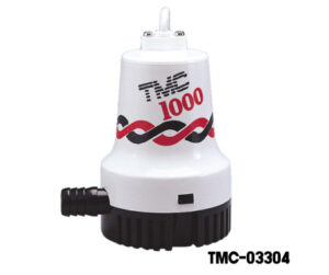 DESCRIPTION TMC-03304-12V BILGE PUMP 1000GPH 12V • Non-automatic bilge pump • Outlet Dia.: 1″ (26.5mm) • Delivery head: 13ft. (4M) • AMP Draw: 5.5A TMC-03304-24V BILGE PUMP 1000GPH 24V • Non-automatic bilge pump • Outlet Dia.: 1″ (26.5mm) • Delivery head: 13ft. (4M) • AMP Draw: 2.8A